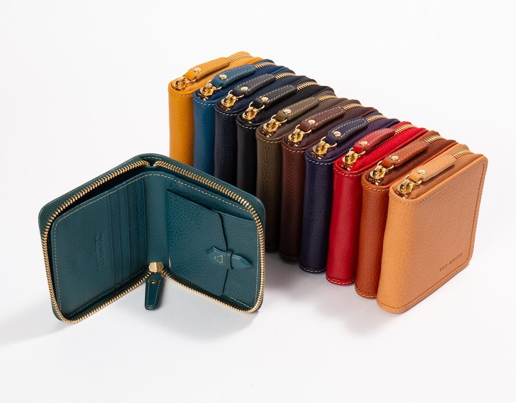 ファスナーには、YKK最高級グレードの「エクセラ」を採用。エレメント一つひとつに丁寧な磨きを施し、本金メッキの上質な輝きと、指先に伝わる滑らかな開閉を実現しています。毎日の使用でもストレスのないスムーズな操作感が魅力です。さらに、本革製のファスナー引き手は手に優しくなじみ、従来の金属パーツと違い、財布本体やバッグの中身を傷付けにくい点も多くのお客様に支持されています。美しさと使いやすさを両立した細部までこだわり抜いた仕上がりです。