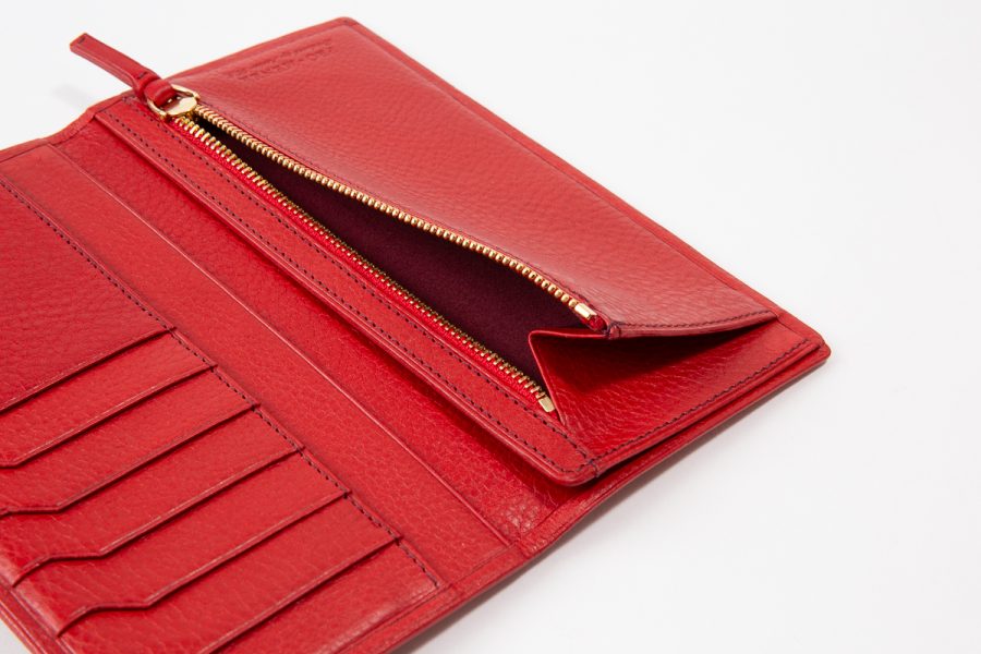 ARIZONA(アリゾナ)のMarlboro(Red)を使用した薄型長財布です。赤いお財布をお探しだったためPRO-MENERトスカーノリスシオの商品をアリゾナレザーに変更したカスタムタムメイドでお作りさせていただきました。内装の生地とステッチはワインをお選びいただきました。アリゾナ特有のしなやかさを活かしつつ、財布としての強度と美しいフォルムを長く保てるよう、内部の芯材を通常よりも硬めのものへと変更する特別な補強を施しました。この見えない部分へのこだわりにより、手に馴染むアリゾナらしい質感はそのままに、型崩れしにくいカッチリとした仕上がりを実現しています。