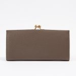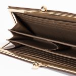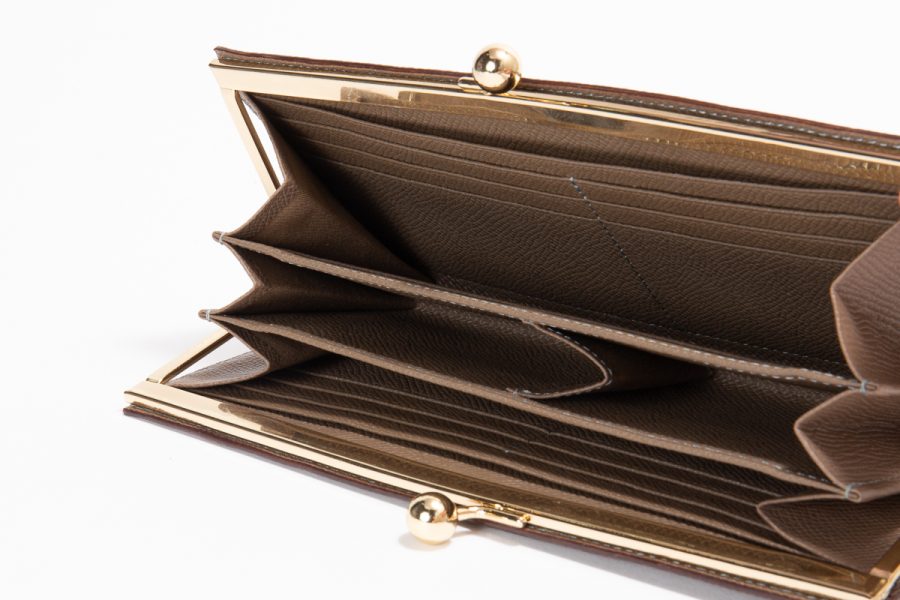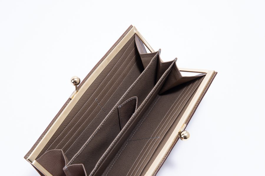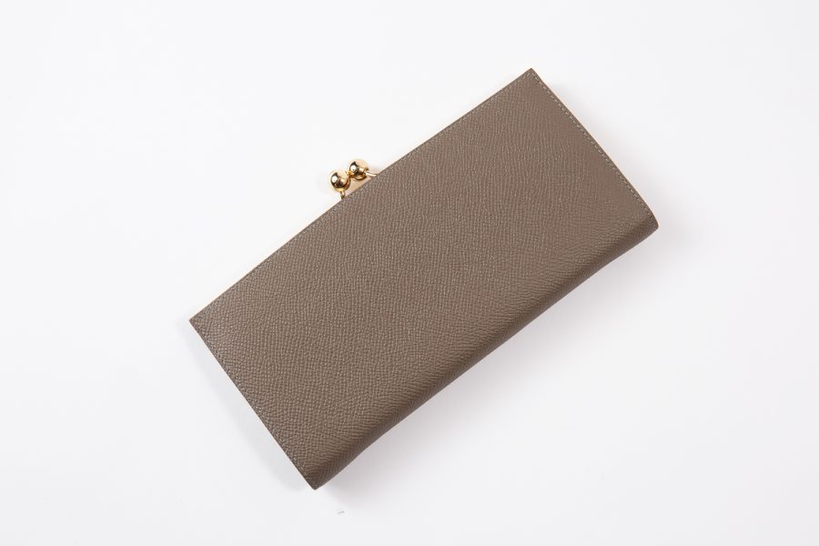WAPROLUX CALF(ワープロラックス)Taupe(トープ)を使用したエレガントながま口長財布です。Taupe(トープ)カラーは、グレージュのようなニュアンスを帯びた上品な色合いで、どんなシーンにも合わせやすい万能トーン。金具の輝きやステッチのコントラストを引き立て、クラシックながま口フォルムにモダンな雰囲気を添えています。がま口タイプは、開閉がスムーズで中身が一目瞭然。見た目の美しさだけでなく、機能性にも優れています。コインポケットに仕切りのマチを追加して小銭を種類ごとに分けて収納できるようにカスタムしています。